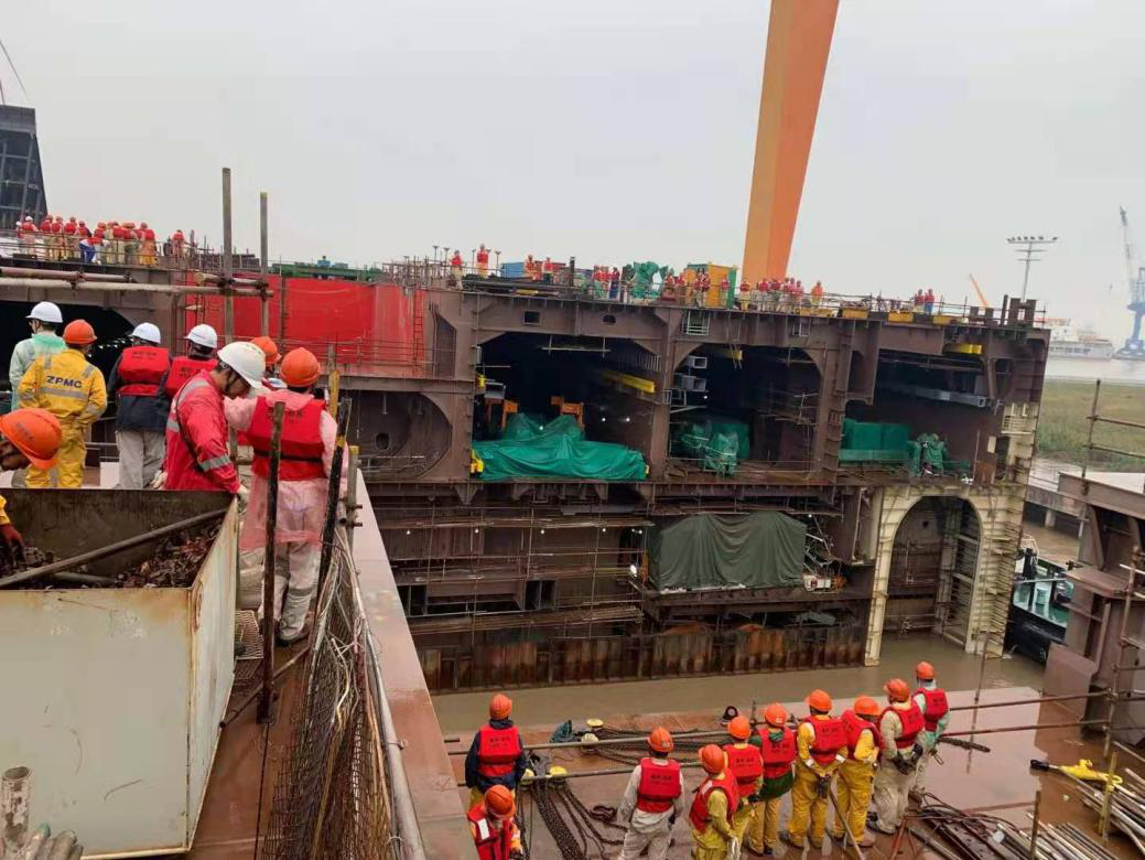 南通豪通船務(wù)有限公司承接了“JSD6000鋪管船”總段對接合攏工程。針對該項工作量大,環(huán)境復(fù)雜,工期緊的特點,公司“調(diào)兵遣將”安排最優(yōu)秀的班組負責(zé)該工程,各級人員也充分發(fā)揮不怕苦,不怕累的精神,夜以繼日、保質(zhì)保量的完成了振華重工安排給我們的任務(wù),確保了該船能夠順利下水,同時公司也受到振華和船東一致好評。
