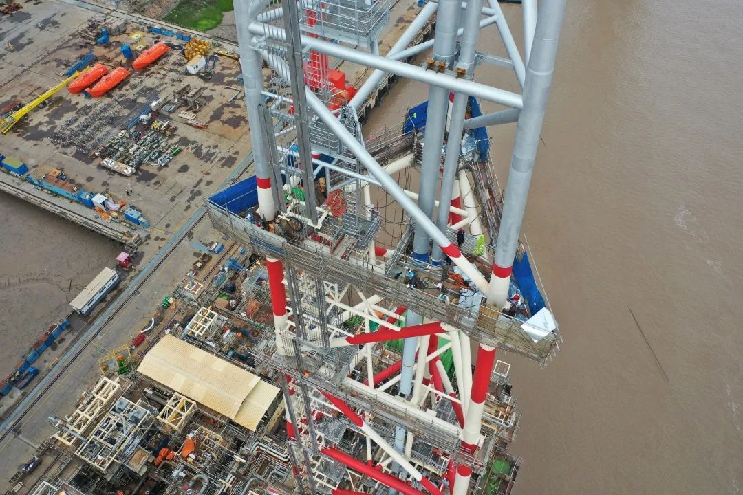 該項目中,南通豪通船務(wù)承建了主船體一半以上的修改,模塊50%的吊裝及火炬塔整體吊裝。后續(xù),我團(tuán)隊將以保交付、增效益為目標(biāo),發(fā)揚(yáng)“螺絲釘”精神,為項目保節(jié)點交付作出應(yīng)有的貢獻(xiàn)。
